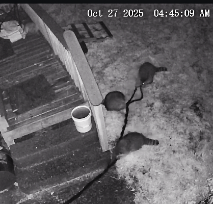 Chewing up my water hose pretending it’s a snake. These juvenile racoons had a good time of it but it ruined my water hose.